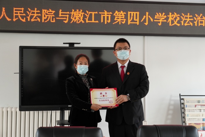 5月31日,党组成员陶卫松,党组成员、政治部主任白志,民一庭副庭长祁彦钢分别前往嫩江市铁东学校、嫩江市第一中学校、嫩江市职业技术教育中心学校、嫩江市第四小学校对接工作,参加法治副校长聘任仪式。
