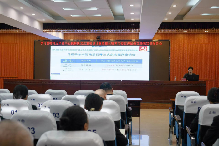 为深入学习贯彻习近平总书记视察黑龙江重要讲话重要指示精神,切实将习近平总书记讲话的思想伟力转化为推动嫩江法院高质量发展的实际行动。11月29日,嫩江市委宣讲团来到嫩江法院举行学习贯彻习近平总书记视察黑龙江重要讲话重要指示精神专题宣讲报告会。嫩江法院全体干警现场聆听报告会。