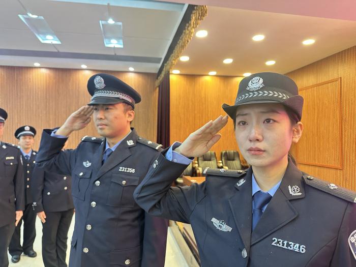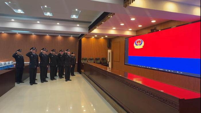 全体司法警察身着警服、警容严整,列队警旗前庄严宣誓,铿锵有力的誓言是他们对职责的郑重承诺,更是对初心的笃定坚守。