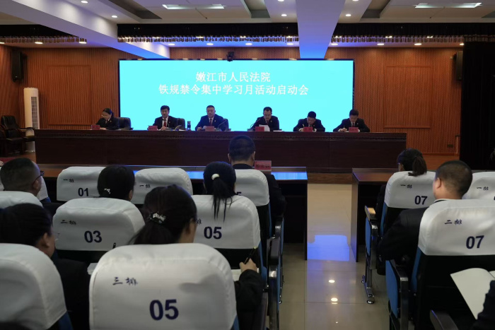 近日,按照市委政法委部署要求,嫩江市人民法院召开“铁规禁令集中学习月”启动会,全院干警参加会议。