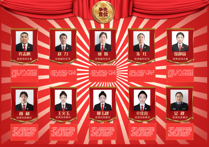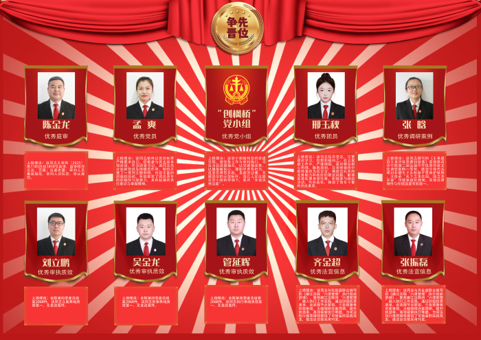 上榜理由:该同志主审的(2025)黑1183民初1858号庭审,庭审程序合法、完整;法庭布置、审判人员着装规范、审判人员仪态、举止规范。