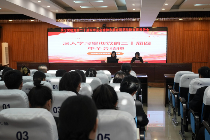 为深入学习贯彻党的二十届四中全会精神,切实把思想和行动统一到党中央的决策部署上来,激励全院干警凝聚干事创业的强大合力,12月26日,嫩江市委宣讲团应邀来到嫩江市人民法院举行学习贯彻党的二十届四中全会精神宣讲报告会。嫩江法院全体干警现场聆听报告会。