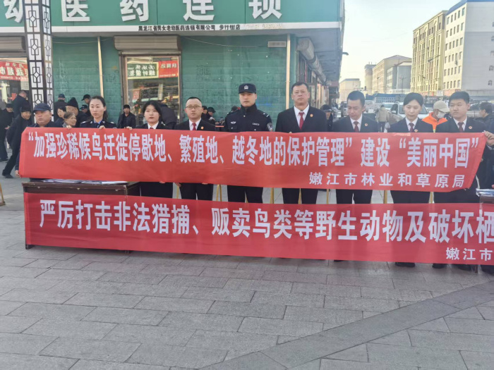 春风送暖,候鸟北归。随着春季候鸟陆续回迁,正值鸟类保护关键时期,为严厉打击非法猎捕、交易、食用野生鸟类等违法犯罪行为,切实守护生物多样性与生态平衡,嫩江市人民法院主动作为、靠前发力,联合市公安局、检察院、林草局、市场监管局等多部门,集中开展野生动物暨候鸟保护专项行动,以司法担当为迁徙生灵保驾护航。